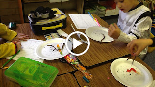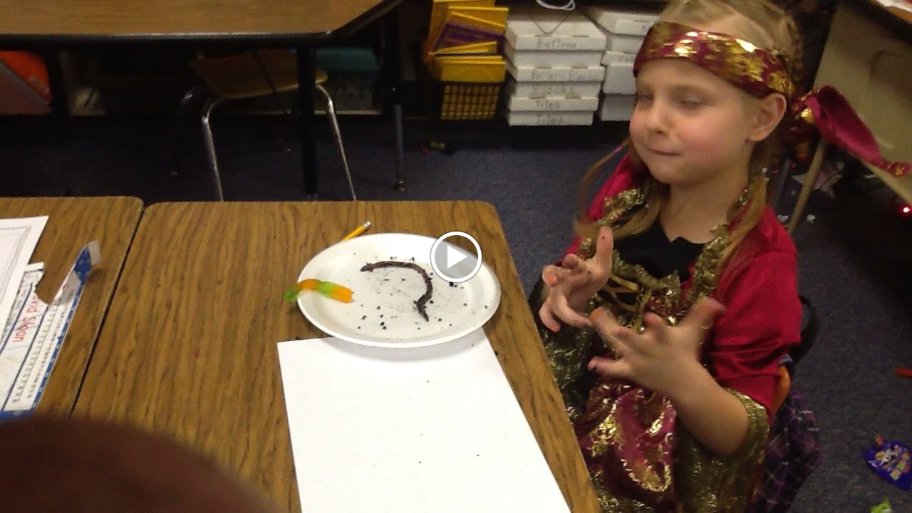 The students had a marvelous time investigating earth worms and gummy worms. Yes some were grossed out, but all survived. All students were given individual gummy worms to compare to a living earthworm. The worms had a lot of fun slithering all around the desks, plates and gummies.